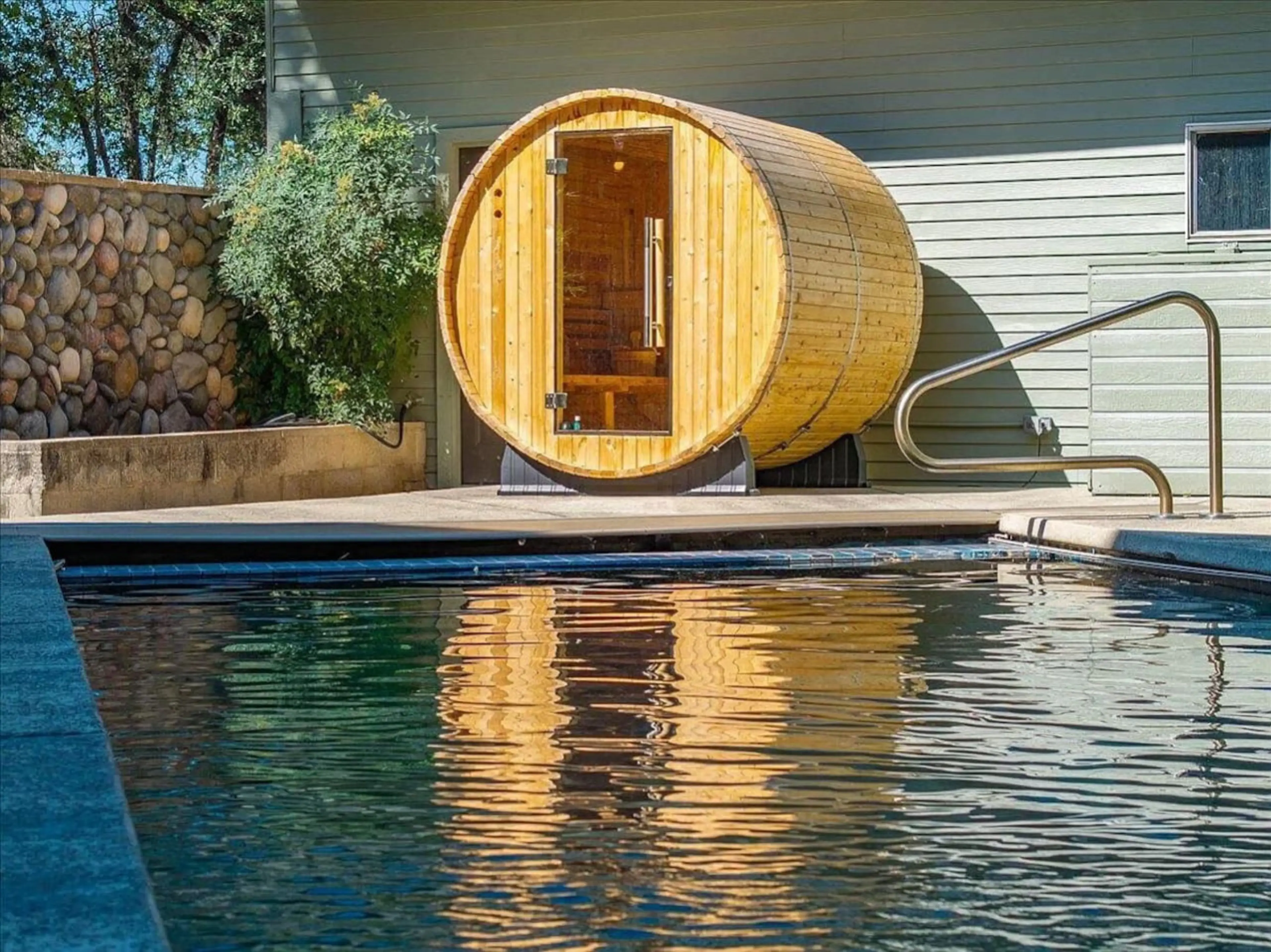 Escape to a peaceful lakefront home with a pool, barrel sauna, and outdoor spaces surrounded by trees. Enjoy a stunning kitchen, open living areas, and room to relax or gather. Swim, unwind, explore the trails, or spend evenings by the fire pit. This home sits on a shared property, but guests have a...